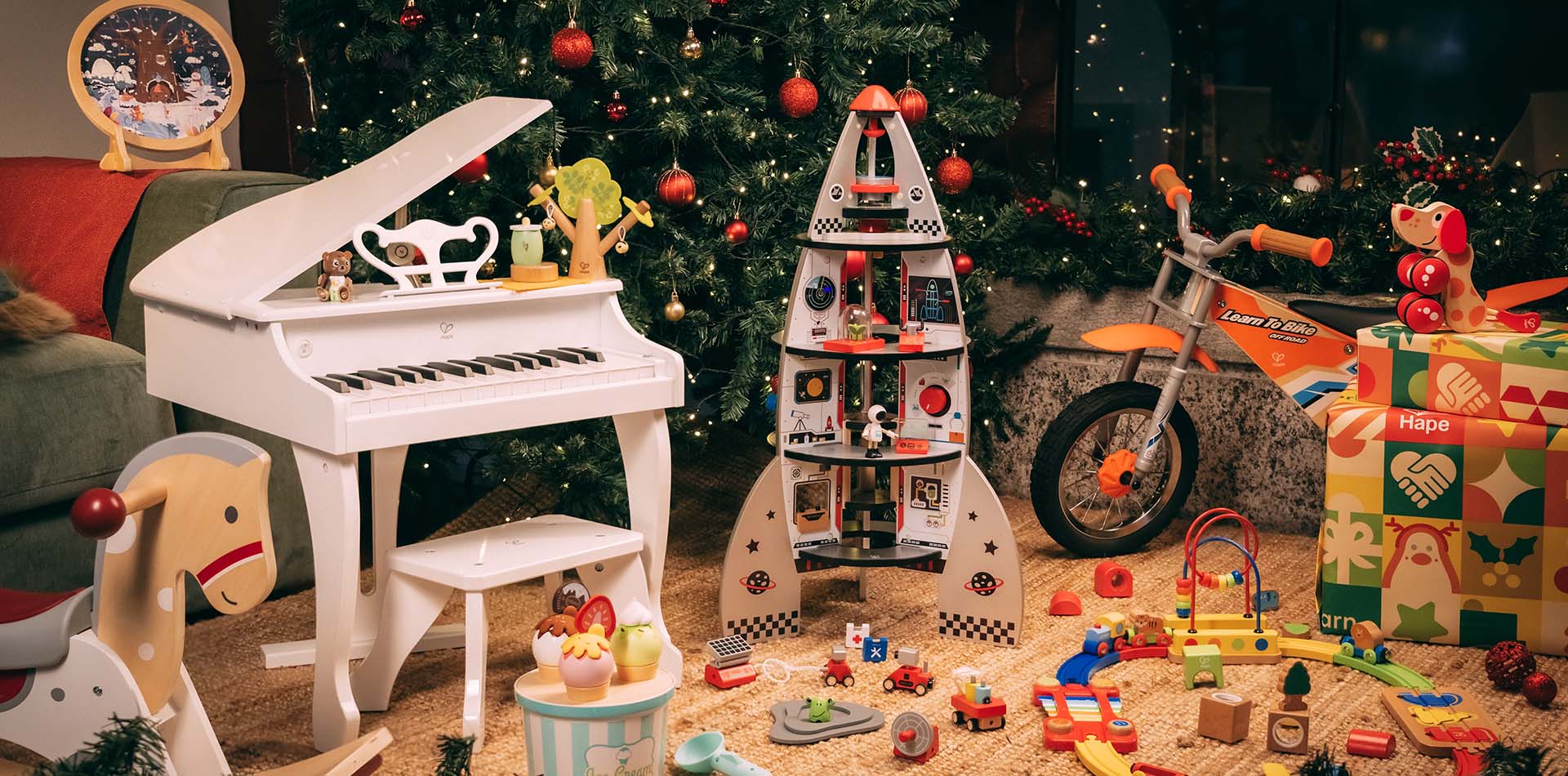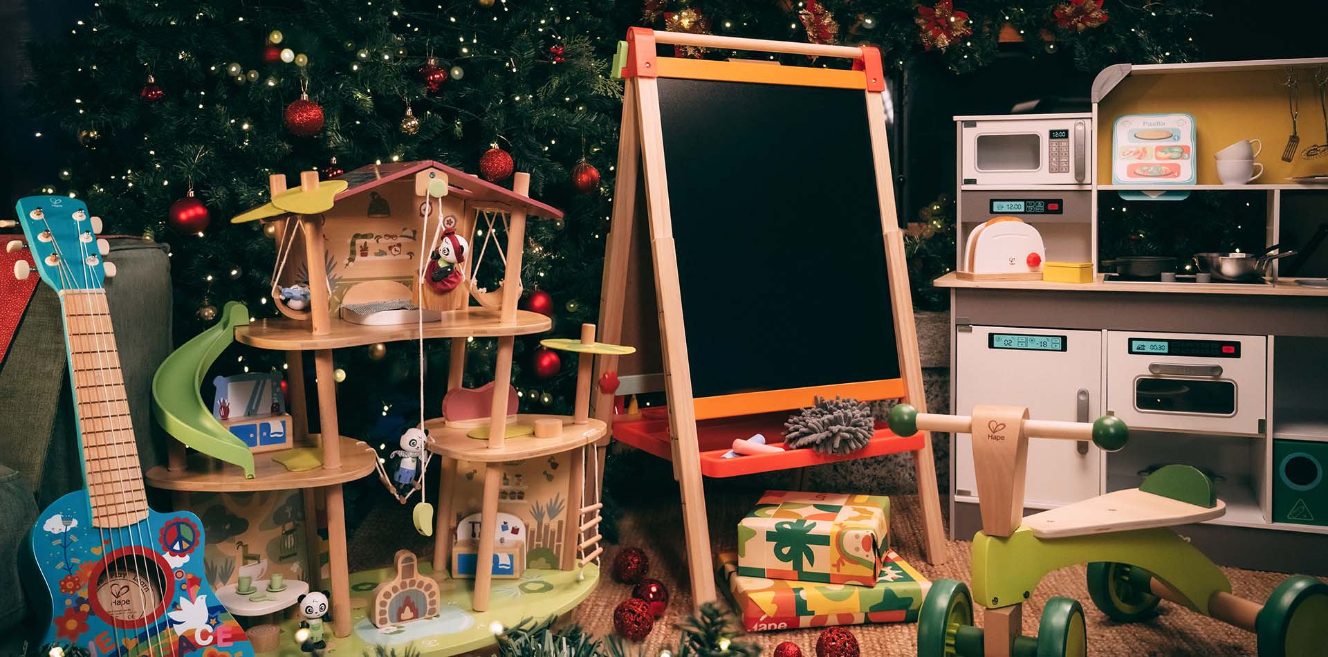 Rediscover the charm of trains, kitchens and dolls’ houses: the wooden classics that feel like Christmas, year after year.