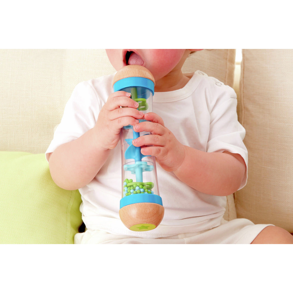 - LEARN TO SHAKE AND RATTLE: Robust and versatile, the rainmaker can help babies discover different variations in sound as they shake, rattle or roll the easy to grip toy. And it’ll help with developing their grabbing abilities as they play.